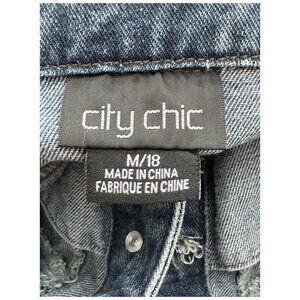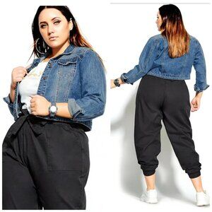 City Chic Denim Trucker Jacket Stretch in Med Wash 100% Cotton Women's SZ 18 (M)