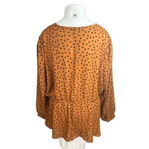 City Chic Dotty Women's Brown Long Sleeve Polka Dot Peplum Wrap Blouse Top Size XL