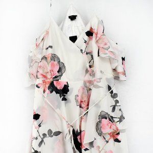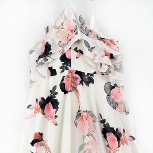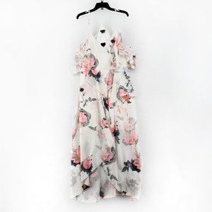 City Chic Dress 16W Womens Plus Maxi White Floral High-Low Cold-Shoulder V-Neck