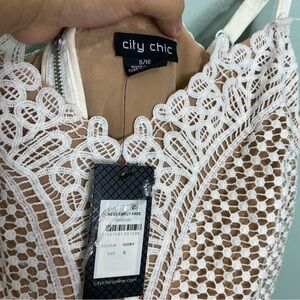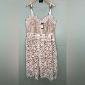 City Chic Dress Fancy Free White Overlay Lace Eyelet Midi Dress Sz 16