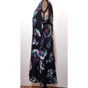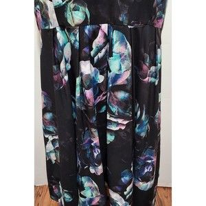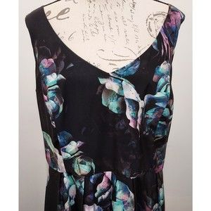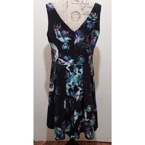 City Chic Dress M Black Floral Lined Deep V Neckline and Back Padded Bust