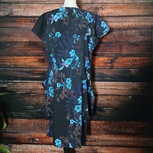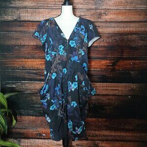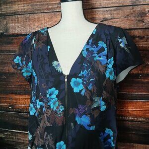 City Chic Dress Plus Size 18 Zip Front Tunic Draped Hip Black Floral Hummingbird
