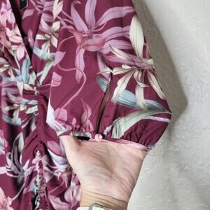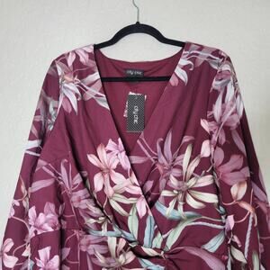 City Chic Dress Womens Plus Size 18 Winter Lily Floral Faux Wrap 3/4 Slit Sleeve Surplice V Neck Ruching Side String For Adjustable Length New NWT