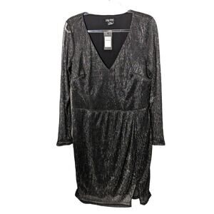 City Chic Dress Sparkle Mini Gunmetal Black Silver Metallic Plus Size 14 New