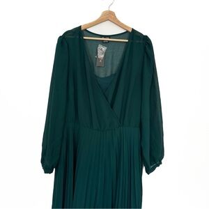 City Chic Dress Womens Plus Sz XL 22 Green Pleated Midi Dress New