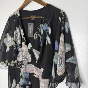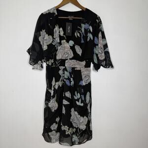 City Chic Dress Womens XS 14 Black Floral Flower Show Chiffon Midi