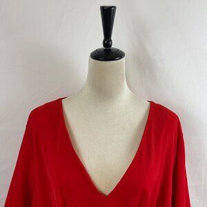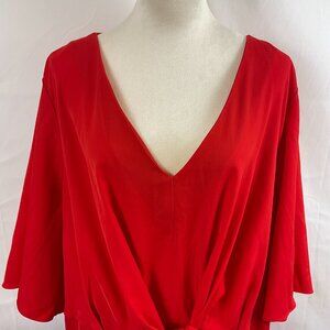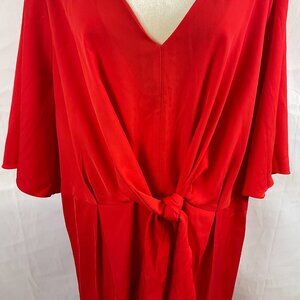 City Chic Dress XL 22W Cherry Red Tie Detail Wide Short Sleeve