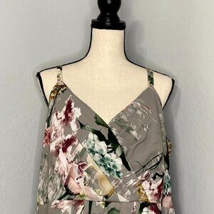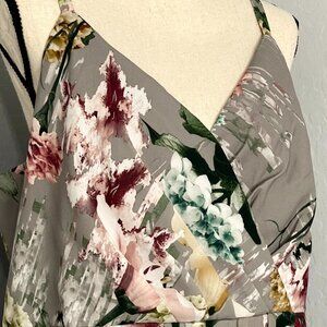 Lined, Light Weight, V Neck, Satin Feel, Floral, Rose, Adjustable Straps, Airy, Faux Wrap, Comfort, Zip Back