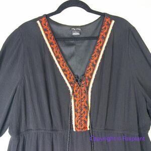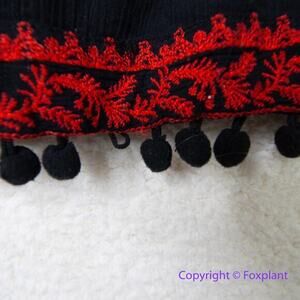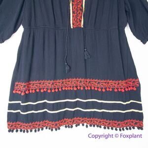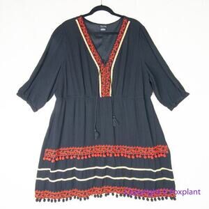 City Chic Embroidered Pom Pom Boho Mini Dress 3/4 Sleeve Black/Red, size L