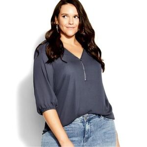 City Chic Fling Gray Relaxed Elbow Sleeve Top Size 20 Zips in the front Elastic sleeves Lightweight