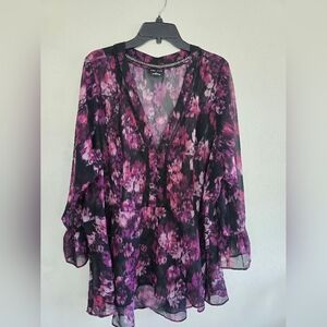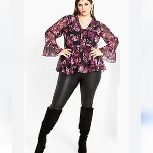 City Chic Floral Blouse XXL Women Popover Sheer Flare Sleeves Dark Feminine