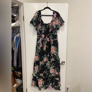 Channel chic style in this tiered maxi dress featuring a beautiful floral pattern and comfortable smocked back from City Chic