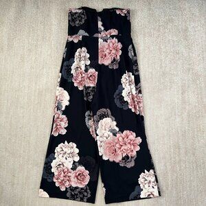 A floral print wide leg strapless sleeveless jumpsuit. Might fit ankle length / cropped. A small fits a size 16 according to the brand's size chart