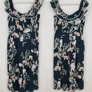 City Chic Floral Wide Leg Jumpsuit 14 Cropped Off Shoulder Fresh Field Green