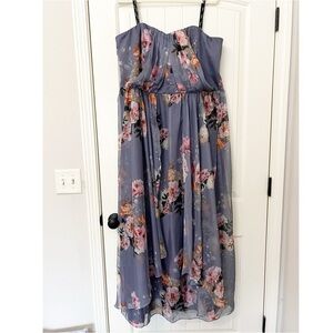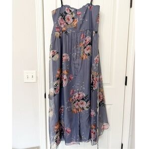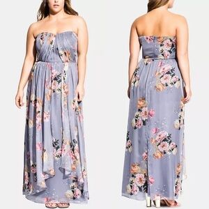 Carefully draped and layered fabrics come together and enhance the stunning rose print on this flowy maxi dress from City Chic.