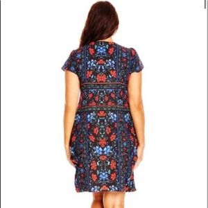 City Chic Folk Dance Print Zip Front Pleat Tunic Dress 16/Small