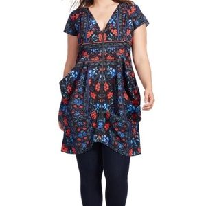 City Chic Folk Dance Print Zip Front Pleat Tunic Dress