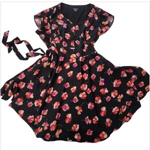 City Chic Formal Casual Pansy Floral Black Midi Plus Size 24 XXL Coquette Scandi