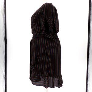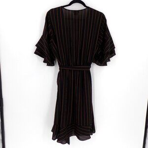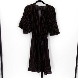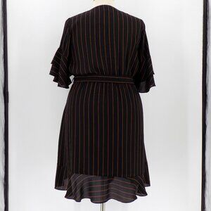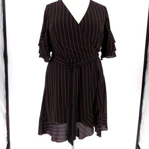 City Chic Golden Stripe Wrap Front Dress Size 16 Black & Brown