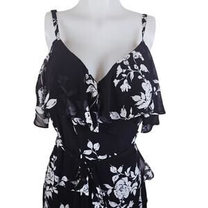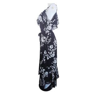 City Chic Gorgeous True Wrap Black White Floral Women's Maxi Dress M 18