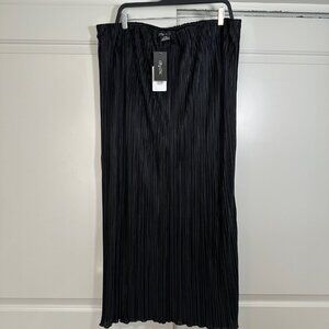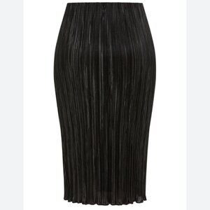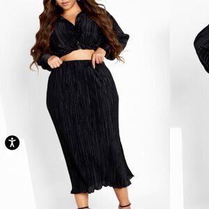 City Chic Hailee Black Plisse Midi Side-Split Skirt - NEW