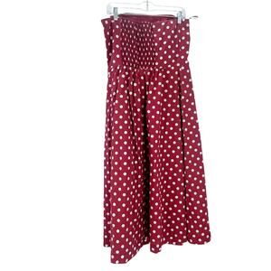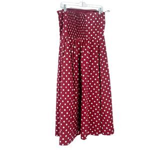 Make a fiery entrance at your next party in this strapless fit-and-flare dress patterned with retro polka dots and styled with stretchy smocking at the back. Strapless Cotton lining 65% polyester, 35% cotton Hand wash, dry flat Imported