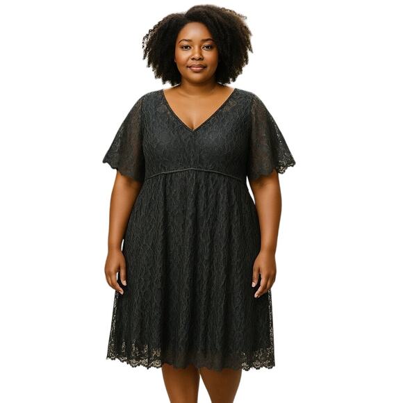 City Chic Lace Dress Womens Plus Size 22 Black Gold Whimsy Goth Formal Party NEW