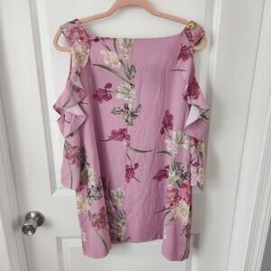 City Chic Light Purple Floral Cold Shoulder Short Sleeve Top Size 22