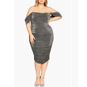 City Chic Luminosity Ruched Off the Shoulder Body-Con Dress Size XXL 24 NWT