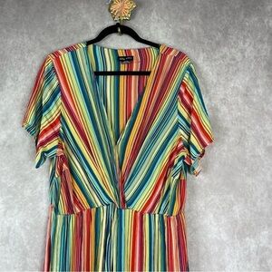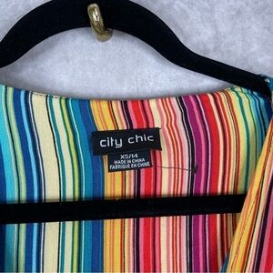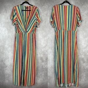 City Chic Magic Stripe Short Sleeve Maxi Dress Rainbow Women's Size XS 14