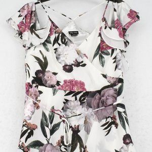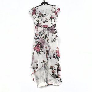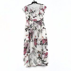 New City Chic Maxi Dress Womens Plus White Cod-Shoulder Floral Print High-Low 14W