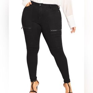 City Chic Mila Moto High Waist Skinny Jeans in Black Wash Harley , Size 18W