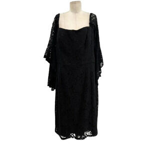 City Chic Mystic Lace Dress Black Bell Sleeve Sheath Plus Size 18