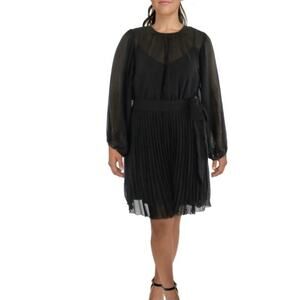 City Chic New Dress Black Pleated Midi Crepe Semi Sheer Women’s Size XL/22