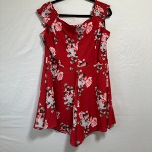 City Chic Off The Shoulder Romper Lined Cherry Blossoms Plus Size 16 Floral. Cute short short romper with back zipper. Good pre-owned condition, no rips, tears, or stains.