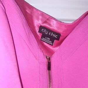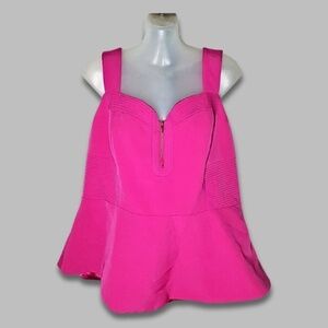 City Chic Peplum Top Front Zipper Wide Straps Ribbed Panel Hot Pink Women’s L/20