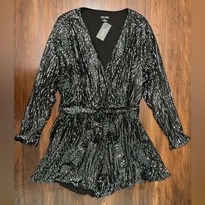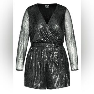 City Chic Playsuit Size XXL Gun Metal Sequins Romper Party Going Out Club Fun