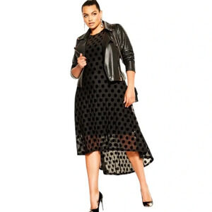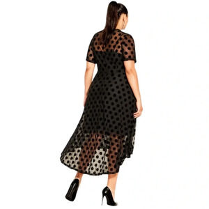 City Chic Plus Size Spot Flock Black Mesh Hi Low Midi Size 14 NWT