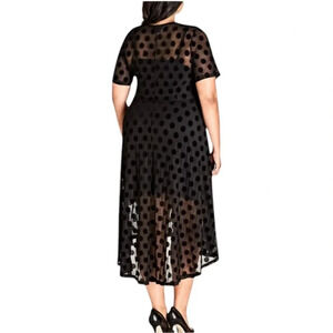 City Chic Plus Size Spot Flock Black Mesh Hi-low Midi Dress