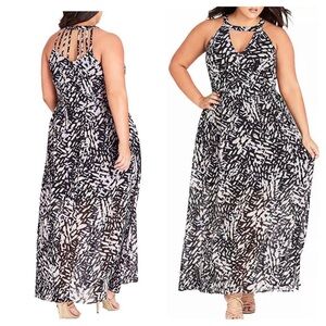 halter neckline is punctuated with a dramatic keyhole cutout on City Chic's printed plus size maxi dress. The skirt is lined to the thigh, offering sheer coverage and serious style.
