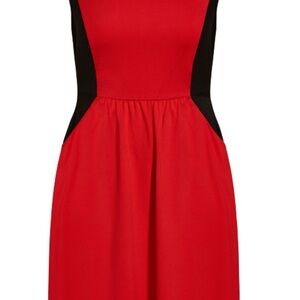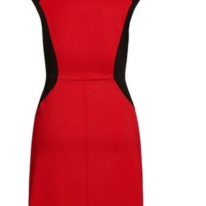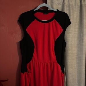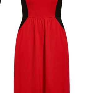 Stylish midi dress by City Chic. Bold red with black accents. Sleeveless design. Perfect for any occasion.