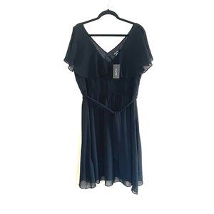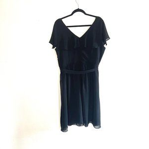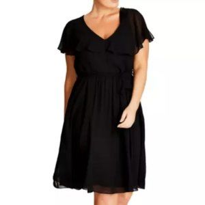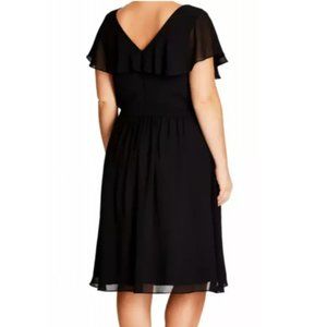 City Chic Ruffle V-Neck Fit & Flare Dress Black - NEW