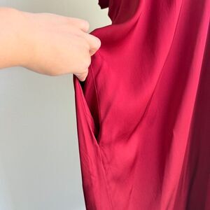 City Chic Satin Batwing Cocoon Kaftan with Pockets in Burgundy Red plus size L20