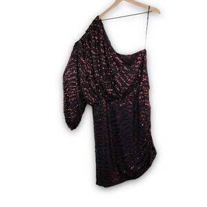 -feminine style with the ruby-hued Sequin Stripe Dress