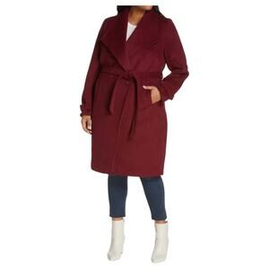 City Chic So Sleek Shawl Collar Belted Pea Coat in Ruby Red Size XL US 22W NWT
