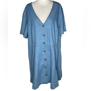 City Chic Soft Denim Dress chambray tortoiseshell buttons short sleeves Sz XL/22