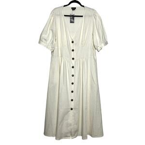 City Chic Sunset Stroll Ivory Button Front Dress Linen Blend Size 16