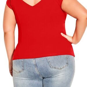 City Chic Top Miss Vintage Limited Edition Red V-Neck Cap Sleeve Size XL 22 NWT