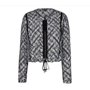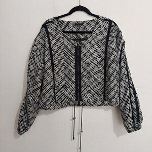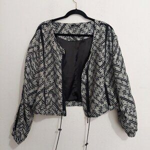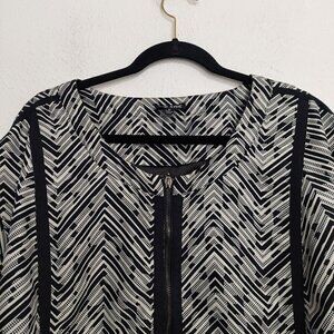 City Chic Tribal Chevron Bomber Jacket Black White Zip Front Balloon Sleeves M