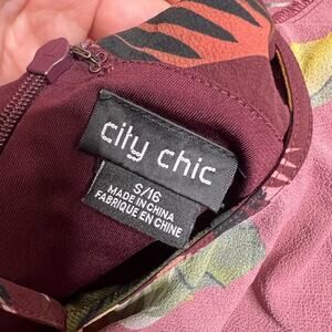 City Chic Tropic Heat Tropical Flowy Burgundy Wrap Wide Leg Jumpsuit Sz 16
